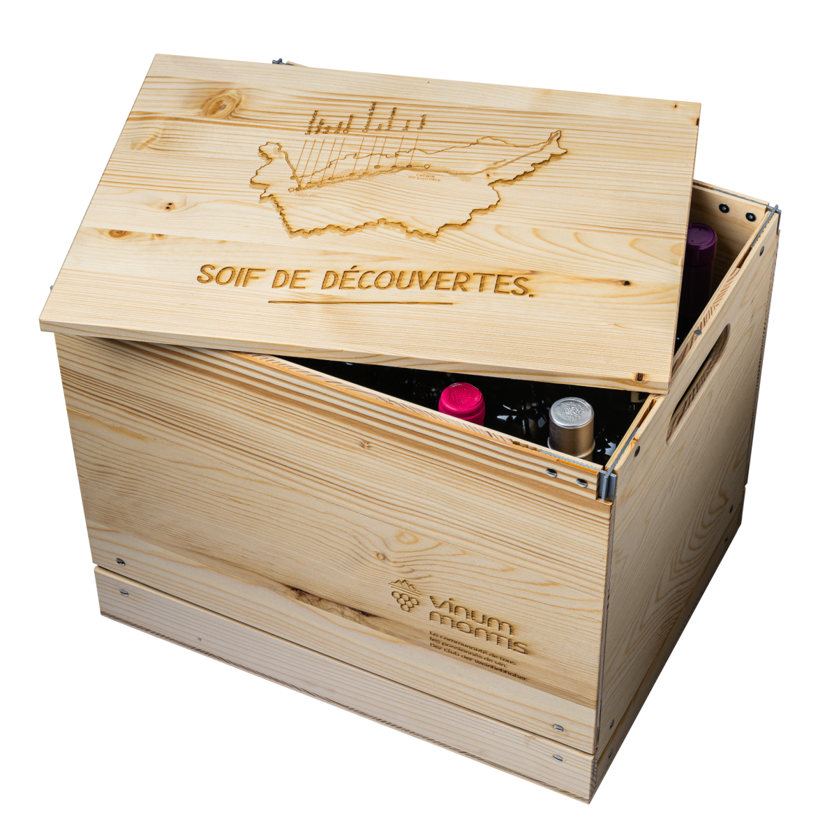 Diese von der Werkstätte der Saint-Hubert-Stiftung hergestellte, faltbare Holzkiste besteht vollständig aus Walliser Materialien und hat den Vorteil, dass sie wiederverwendbar ist. Verstauen Sie sie im Kofferraum Ihres Autos oder im Keller und holen Sie sie wieder hervor, um Ihre Produkte zu transportieren.